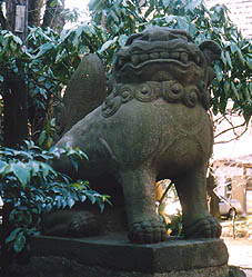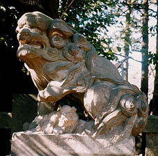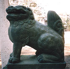 ・「両基の石猊、蹲踞して之を護りぬ。」