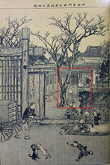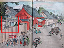 ・1対――社殿前(牛込箪笥町南蔵院及弁天坂之図)