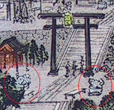 ・1対――第一石段上(市ヶ谷八幡神社の図)@ ・1対――第二石段上(市ヶ谷八幡神社の図)A ・狐1対――茶ノ木稲荷前(市ヶ谷八幡神社の図)B