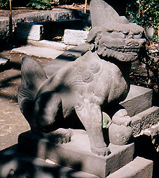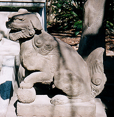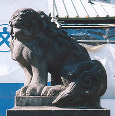 ・「社前には鉄製貯水盤石獅各一双を置く。」